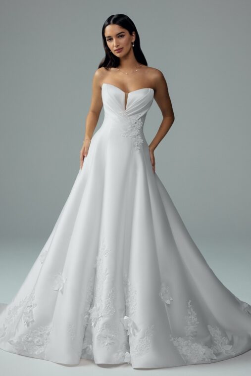 Their signature collection of wedding dresses, is inspired by the latest trends from the catwalk. Known for classic and elegant looks, they offer a wide selection of wedding gown styles and silhouettes – from modern clean A-lines to traditional fairy tale ball gowns – Ronald Joyce brides are always unique and indisputably stunning