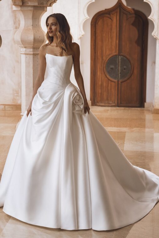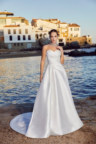 In this collection you’ll find the latest colour trends including blush, oyster and light gold as well as alluring low backs, trendy Boho sheath skirts, over skirts to enable a change from a day to night time look, detachable body suits, tone on tone beading and matching veils.